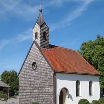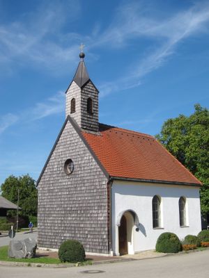 Kapelle, kleiner Saalbau mit Dachreiter, erbaut 1904; mit Kirchenausstattung