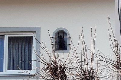 Hausfigur Christus in der Rast, bâtiment de Hurlach, Haute-Bavière, Allemagne