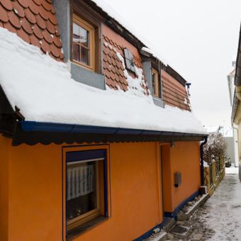 Baustraße 11, eingeschossige Bauten mit Mansard- und Satteldach, 18./19. Jahrhundert