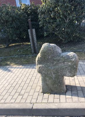 Steinkreuz Stöckigter Weg, Sühnekreuz, ortshistorische Bedeutung. Granitkreuz, in den Fußweg eingelassen, linker Kreuzarm abgebrochen