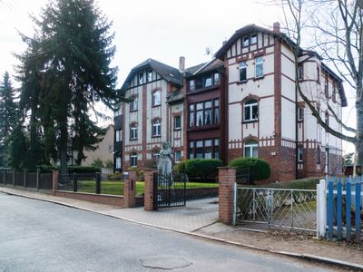 Wohnhaus in halboffener Bebauung und in Ecklage, mit seitlicher Pforte Leipziger Straße 1