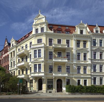 Mietshaus in vom Typ geschlossener Bebauung mit Vorgarten und Einfriedung Carl-von-Ossietzky-Straße 1