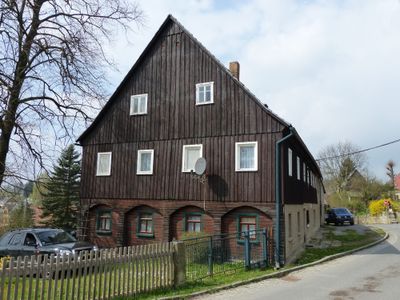 Buchenstraße 8 Hinterhermsdorf, baugeschichtlich und sozialgeschichtlich von Bedeutung, Obergeschoss und Giebel Fachwerk verbrettert, vier Joche Umgebinderest an der Giebelseite, EG entscheidend verändert, Fenster weitgehend originale Größe, profiliertes Sandsteingewände (Korbb