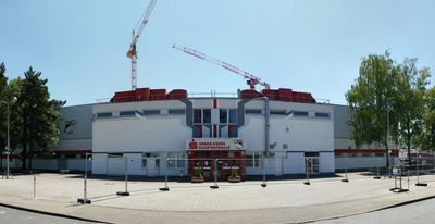L'établissement a remplacé l'ancien stade de glace Sparkassen en 2021, déménageant à 2,6 kilomètres de son emplacement original de 1979.