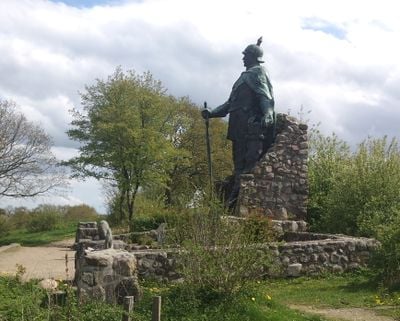 La statue en bronze domine le paysage du Schleswig-Holstein, placée sur une position élevée qui la rend visible depuis des distances considérables.