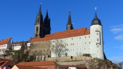 Le Bischofsschloss sur la place de la Cathédrale est un château sur une colline dominant l'Elbe avec trois ailes dotées de fenêtres gothiques et de niveaux de sous-sol voûtés en dessous. L'angle sud-est est marqué par la tour Liebenstein avec sa distinctive baie vitrée sur deux étages.