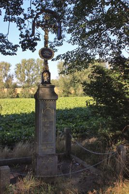 Wegkreuz zwischen Salzenforst und Bolbritz, gusseisernes Kruzifix auf Granitsockel