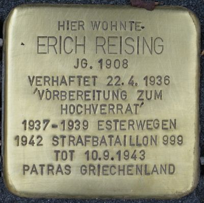 Stolperstein à la mémoire d’Erich Reising, stumbling stone in Witten, Germany