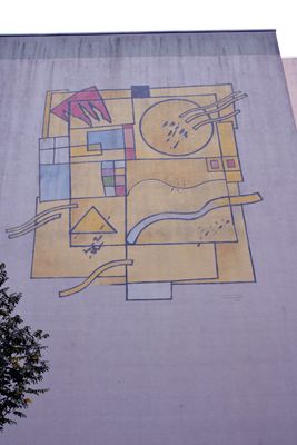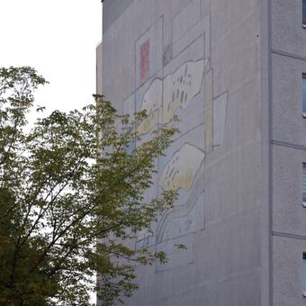 Komposition mit Wolken, one of two murals on opposite gable walls by Lothar Gericke in Berlin-Marzahn, Germany