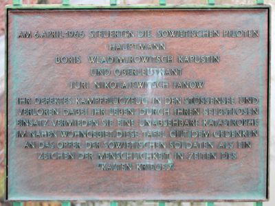 Plaque commémorative du crash d'un avion de combat soviétique sur le pont Stößenseebrücke, Berlin, Allemagne