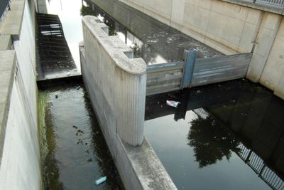 Dique basculante de Lautensteg, dique basculante en el canál Elstermühlgraben en la calle Ranstädter Steinweg en Leipzig, Sajonia, Alemania