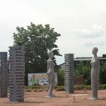 Gedankentürme, Skulpturengruppe von Gil Topaz am Buchener Willy-Brandt-Platz