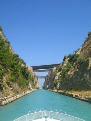L'Isthme de Corinthe forme une connexion de 6,3 kilomètres de large entre la Grèce continentale et la péninsule du Péloponnèse, s'élevant à 90 mètres.