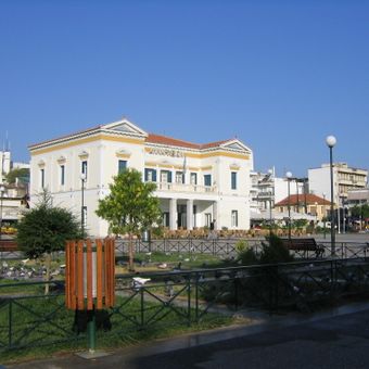 Le nom vient du mot grec signifiant dispersé, rappelant les villages séparés qui se formèrent sans rempart commun. Au centre se dresse aujourd'hui une statue de Léonidas, le roi qui combattit avec trois cents soldats aux Thermopyles.
