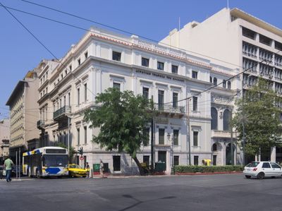 Le bâtiment se trouve sur une rue animée du centre-ville d'Athènes et est clairement visible en marchant le long de la rue Panepistimiou. L'accès à l'intérieur peut être limité, alors vérifiez à l'avance ou visitez pendant les heures d'ouverture régulières.