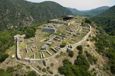 Le château de pierre se dresse sur une colline de 130 mètres à l'entrée ouest des détroits de Rentina, surplombant la route entre Thessalonique et Kavala.