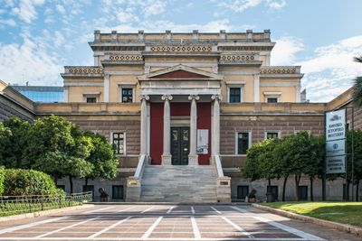 La statue en bronze du Général Theodoros Kolokotronis à cheval se dresse devant le bâtiment depuis 1904.