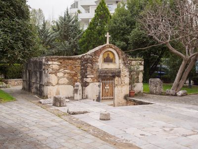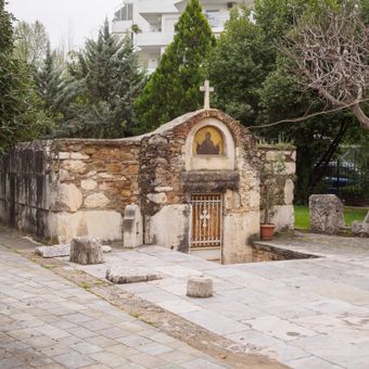 Située à l'intersection des rues Panagia Marmariotissis et Sofoklis Venizelou, cette structure en marbre présente une voûte semi-cylindrique et une entrée occidentale.