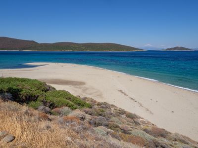 La Grande Plage de Sable s'étend le long de la côte méditerranéenne avec du sable blanc et des eaux limpides.