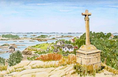 L'Île-de-Bréhat est une île sans voitures au large de la côte bretonne, composée de deux parties principales reliées par un pont avec des roches granitiques aux tons rosés. Le terrain couvre environ trois kilomètres carrés et présente un mélange dense de chemins, de murets de pierre, de maisons aux toits d'ardoise et de jardins garnis de plantes méridionales.