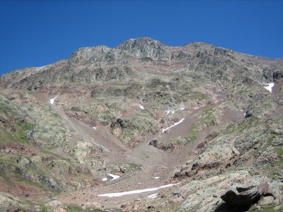 Pique d'Estats, Sommet montagneux à la frontière franco-espagnole du Massif du Montcalm, Pyrénées.
