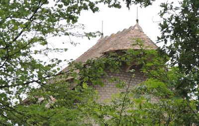 Le Château d'Orgeval présente des caractéristiques architecturales avec des formes asymétriques, des angles arrondis et diverses formes de fenêtres réparties sur plusieurs niveaux.