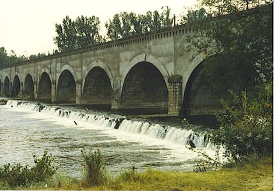 Pont-canal du Guétin, Aqueduc navigable à Cuffy, France.