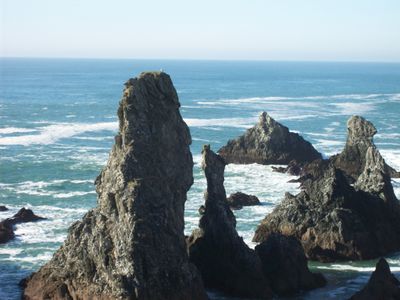 Les Aiguilles de Port-Coton sont des pics de granit surgissant de la mer, formant des silhouettes distinctes dont une roche centrale nommée Le Roi.