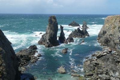 Pendant les vents forts, les embruns autour des rochers créent des motifs blancs qui ont inspiré le nom Port-Coton.