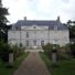 Le château présente une façade symétrique avec des grilles décoratives, situé sur une colline surplombant la rivière Maine et le paysage environnant.