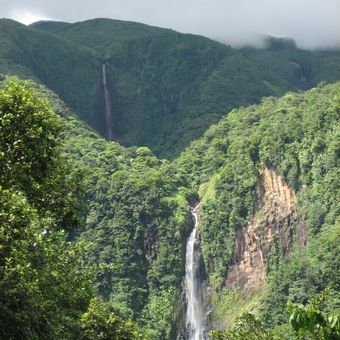 Les Chutes du Carbet se composent de trois cascades distinctes mesurant 245 mètres, 110 mètres et 20 mètres de hauteur sur la Rivière du Grand Carbet.