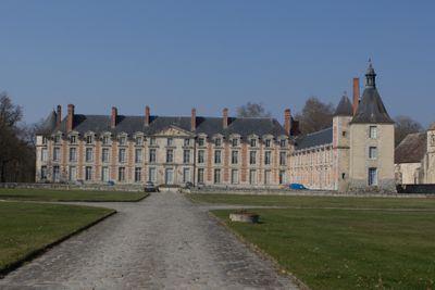 Le château présente des ailes symétriques, une cour centrale et des jardins étendus conçus selon les principes architecturaux de la Renaissance française.