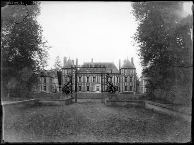 Le château du XVIIe siècle s'étend sur 95 hectares avec dix-huit dépendances, présentant un corps principal avec deux pavillons latéraux et un toit d'ardoise.