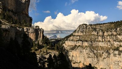 Les falaises calcaires du Cirque d'Archiane s'élèvent sur 400 mètres, formant un bassin naturel à la limite sud du massif du Vercors.