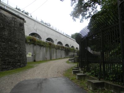 Le Fort de Saint-Priest s'élève à 256 mètres d'altitude sur une colline, avec des fossés profonds et de hautes grilles entourant la structure principale.