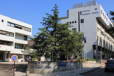 L'Hôpital Robert Debré s'étend sur plusieurs bâtiments aux structures modernes en verre et béton, formant un complexe médical majeur au nord-est de Paris.