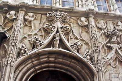 La façade et la cour intérieure de cette demeure du XVIe siècle sont ornées de multiples têtes sculptées aux motifs symboliques.