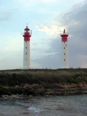 Les deux phares de 25 mètres de hauteur servent de points de navigation maritime entre les îles d'Oléron et de Ré sur la côte atlantique.
