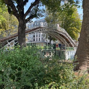 La structure en acier à treillis traverse le Canal Saint-Martin, offrant aux piétons un accès direct entre les rives est et ouest de la voie navigable.
