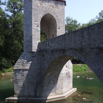 Pont de la Légende, Pont médiéval à Sauveterre-de-Béarn, France.