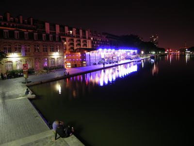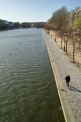 La promenade riveraine comprend des surfaces sablées pour la pétanque et relie les stations de métro Stalingrad, Riquet et Crimée.