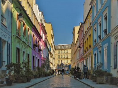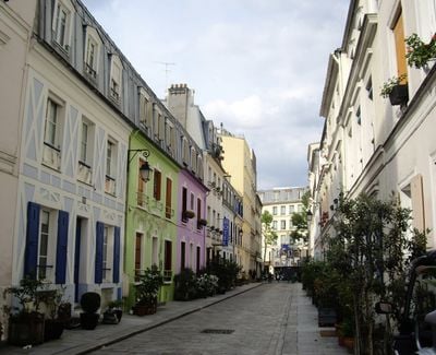 Rue Crémieux, Rue piétonne pavée dans le 12e arrondissement, France.