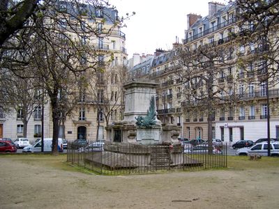 Le square, créé en 1896, abrite le socle d'un monument dédié à François-Vincent Raspail avec deux bas-reliefs en bronze.