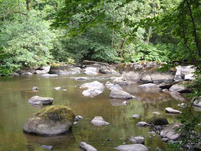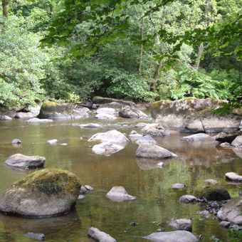 Le site Corot est un espace naturel le long du Glane comprenant un sentier d'environ 800 mètres entre deux moulins historiques. Le chemin traverse des zones avec de grands rochers de granit et une végétation dense.