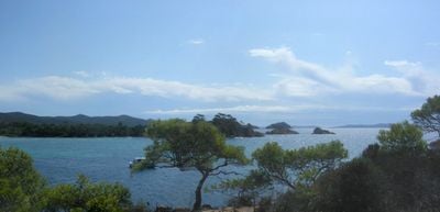 La Villa La Reine Jeanne s'élève sur un domaine de 70 hectares près du Fort de Brégançon, avec des lignes épurées et des éléments architecturaux modernistes.