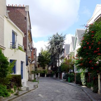 Villa Léandre, Rue résidentielle art déco à Montmartre, France.