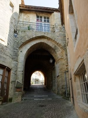 Le porche conserve encore son système de pont-levis et de herse, témoignant des techniques de fortification médiévale utilisées pour contrôler l'accès principal à cette cité imprenable du Perche.
