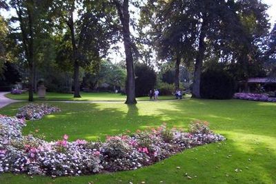 Le parc intègre des éléments artistiques variés, notamment un kiosque à musique, des bassins et des sculptures d'Antoine Etex honorant des personnalités locales.