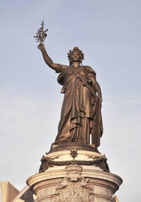 Le monument intègre des figures représentant la liberté, l'égalité et la fraternité, principes fondamentaux définissant la société républicaine française.