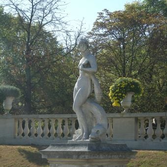 Vénus au dauphin, Sculpture en marbre au Jardin du Luxembourg, Paris, France